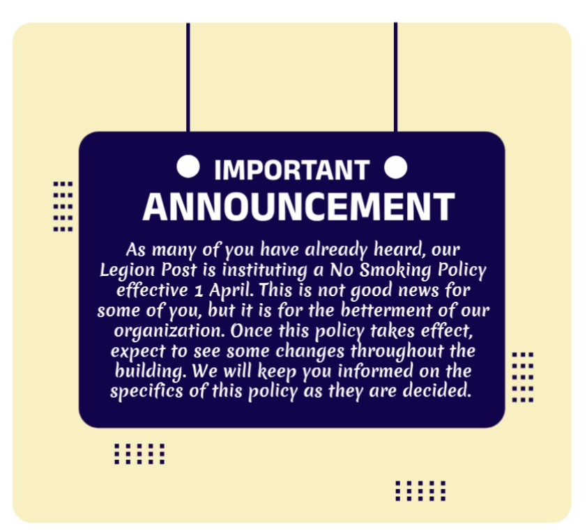 Since our charter was signed in October 1952, our American Legion Post has been welcoming VETERANS from all branches of our Armed Forces. Today, we continue to welcome all military personnel serving our Country.